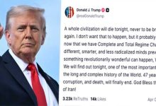 ടെഹ്റാൻ: അമേരിക്കൻ പ്രസിഡന്റ് ഡൊണാൾഡ് ട്രംപ് പറഞ്ഞ സമയം അടുത്തു, രാജ്യത്തെ പ്രതിരോധിക്കാൻ ജീവൻ ത്യജിക്കാൻ തയ്യാറാണെന്ന് 14 ദശലക്ഷത്തിലധികം…
