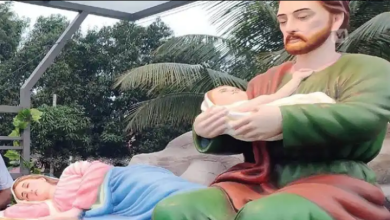 കിടന്നുറങ്ങുന്ന മറിയം, തൊട്ടടുത്ത് ഉണ്ണിയേശുവിനെ കൈകളിലേന്തി ഇരിക്കുന്ന ജോസഫ്; ഇത് വിത്യസ്തമായ തിരുകുടുംബ ശിൽപം