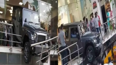 മഹീന്ദ്ര ഥാർ വാഹനം ഷോറൂമിൽ അപകടത്തിൽ പെട്ടു
