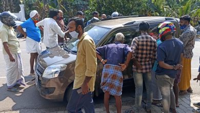പാമ്പിനെ വെല്ലുംവിധം ഇഴഞ്ഞെത്തിയ കാറിനുള്ളിലെ ‘പാമ്പി’നെ നാട്ടുകാര് പുറത്തെടുത്തു