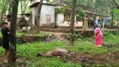 വീടിനോട് ചേര്ന്ന് കെട്ടിയിരുന്ന പോത്തിനെ കാട്ടാന ചവിട്ടിക്കൊന്നു