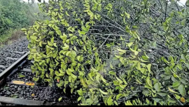 മരംവീണ് ട്രെയിൻ ഗതാഗതം തടസപ്പെട്ടു