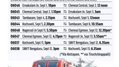 കോട്ടയം : ഓണക്കാലത്തെ തിരക്ക് കണക്കിലെടുത്ത് ദക്ഷിണ റെയിൽവേ 10 സ്പെഷൽ ട്രെയിനുകൾ പ്രഖ്യാപിച്ചു.ചെന്നൈ, ബംഗളൂരു, വേളാങ്കണ്ണി എന്നിവിടങ്ങളിലേക്കാണ് ഇത്. മലയാളികള് ഏറെയുള്ള മുംബൈ, ഡല്ഹി, ഹൈദരാബാദ് എന്നിവിടങ്ങളില് നിന്നും പ്രത്യേക ട്രെയിനുകള് ഇല്ല.പെരുന്നാൾ കണക്കിലെടുത്താണ് വേളാങ്കണ്ണിയിലേക്ക് ട്രെയിൻ അനുവദിച്ചിട്ടുള്ളത്. ചെന്നൈ, ബംഗളൂരു എന്നിവിടങ്ങളിലേക്ക് സെപ്റ്റംബർ ഒന്ന് മുതൽ പതിമൂന്ന് വരെയാണ് സ്പെഷൽ ട്രെയിനുകൾ സർവീസ് നടത്തുക(ഇമേജ് ശ്രദ്ധിക്കുക) .വേളാങ്കണ്ണിയിലേക്ക് എറണാകുളത്തു നിന്നും തിരുവനന്തപുരത്തു നിന്നും ഓരോ സ്പെഷല് ട്രെയിനുകള് പ്രഖ്യാപിച്ചിട്ടുണ്ട്. എറണാകുളം ജംഗ്ഷന്- വേളാങ്കണ്ണി ട്രെയിന് അടുത്തയാഴ്ച സര്വീസ് ആരംഭിക്കും. ഓഗസ്റ്റ് 15 ന് ഉച്ചയ്ക്ക് പുറപ്പെട്ട് പിറ്റേന്ന് രാവിലെ 8.15 ന് ട്രെയിന് വേളാങ്കണ്ണിയിലെത്തും.സെപ്റ്റംബര് അഞ്ചുവരെ എല്ലാ തിങ്കളാഴ്ചകളിലുമാണ് ട്രെയിന്. കോട്ടയം വഴിയാണ് സര്വീസ്. മടക്ക ട്രെയില് വൈകിട്ട് 5.30 ന് വേളാങ്കണ്ണിയില് നിന്നും പുറപ്പെട്ട് പിറ്റേന്ന് ഉച്ചയ്ക്ക് 12 ന് എറണാകുളത്ത് എത്തും. സെപ്റ്റംബര് ആറുവരെ എല്ലാ ചൊവ്വാഴ്ചകളിലുമാണ് സര്വീസ്. തിരുവനന്തപുരം-വേളാങ്കണ്ണി ട്രെയിന് ഓഗസ്റ്റ് 17 ന് വൈകീട്ട്…