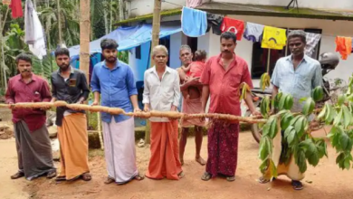 മലപ്പുറം: ഉണങ്ങിയ കമുകിനുള്ളിലുണ്ടായ ഏഴര അടി നീളമുള്ള കപ്പ കൗതുകമാകുന്നു. പാണ്ടിക്കാട് പഞ്ചായത്ത് പത്താം വാര്ഡ് പൂളമണ്ണ മരുതപ്പാടം കോളനിയിലെ മരുതപ്പാടം കുഞ്ഞന്റെ വീട്ടിലാണ് ഏഴര അടി നീളവും 15 കിലോയോളം ഭാരവുമുള്ള കപ്പ വളര്ന്നത്. കഴിഞ്ഞ നിയമസഭാ തിരഞ്ഞെടുപ്പ് പ്രചാരണാര്ഥം കൊടി കെട്ടാന് വേണ്ടി നാട്ടിയ കമുകില് അല്പ്പം കൂടി നീളം കിട്ടാന് വേണ്ടിയായിരുന്നു കപ്പയുടെ കൊമ്ബ് കുത്തിയത്. ഈ കൊമ്ബ് തളിര്ത്ത് കാമ്ബ് വളരുകയായിരുന്നു. ഒരു വര്ഷമാണ് കപ്പയുടെ പ്രായം. കമുകിന്റെ വിള്ളല് ശ്രദ്ധയില് പെട്ടപ്പോഴാണ് വീട്ടുകാര് ഇത് പൊളിച്ച് നോക്കിയത്. ഏഴര അടി നീളത്തിലുള്ള കപ്പയാണ് ഇതിനകത്ത് നിന്ന് ലഭിച്ചത്. ആദ്യമായി ഇത്രയും നീളത്തിലുള്ള കപ്പ കണ്ടതിന്റെ അതിശയത്തിലാണ് വീട്ടുകാരും നാട്ടുകാരും.