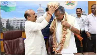 കര്ണാടകയിലെത്തിയ പിണറായി വിജയനെ പരമ്ബരാഗത ശൈലിയിൽ സ്വീകരിച്ച് മുഖ്യമന്ത്രി ബസവരാജ് ബൊമ്മെ
