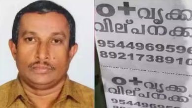 കടം വീട്ടാൻ വഴിയില്ലാത്ത പെയിൻറിംഗ് തൊഴിലാളി ഒ പോസിറ്റീവ് വൃക്ക വിൽപ്പനയ്ക്കുണ്ടെന്ന് പരസ്യപ്പെടുത്തി പോസ്റ്ററൊട്ടിച്ചു