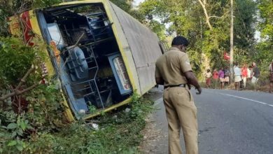 നേര്യമംഗലത്ത് കെ.എസ്.ആര്.ടി.സി ബസ് മറിഞ്ഞു; ഡ്രൈവര് ഉറങ്ങിപ്പോയെന്ന് നിഗമനം