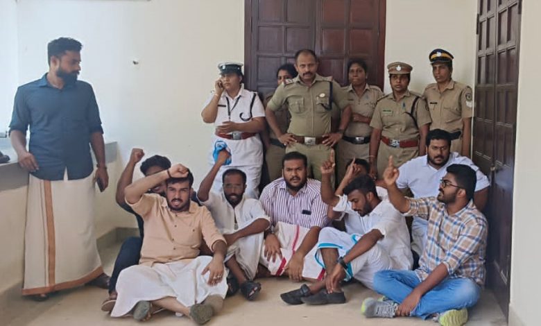 കേരളാ യൂണിവേഴ്സിറ്റി യൂണിയൻ – സെനറ്റ് തെരഞ്ഞെടുപ്പുമായി ബന്ധപ്പെട്ട് നടന്ന ക്രമക്കേടുകൾ രജിസ്ട്രാറുടെ ശ്രദ്ധയിൽപ്പെടുത്താൻ എത്തിയ കെ.എസ്.യു സംസ്ഥാന പ്രസിഡൻ്റ് അലോഷ്യസ് സേവ്യർ, വൈസ് പ്രസിഡൻ്റുമാരായ യദുകൃഷ്ണൻ, അരുൺ രാജേന്ദ്രൻ ഉൾപ്പടെയുള്ള കെ.എസ്.യു നേതാക്കളെ പോലീസ് അകാരണമായി മർദ്ദിക്കുകയും വലിച്ചിഴച്ചു അറസ്റ്റ് ചെയ്തു .