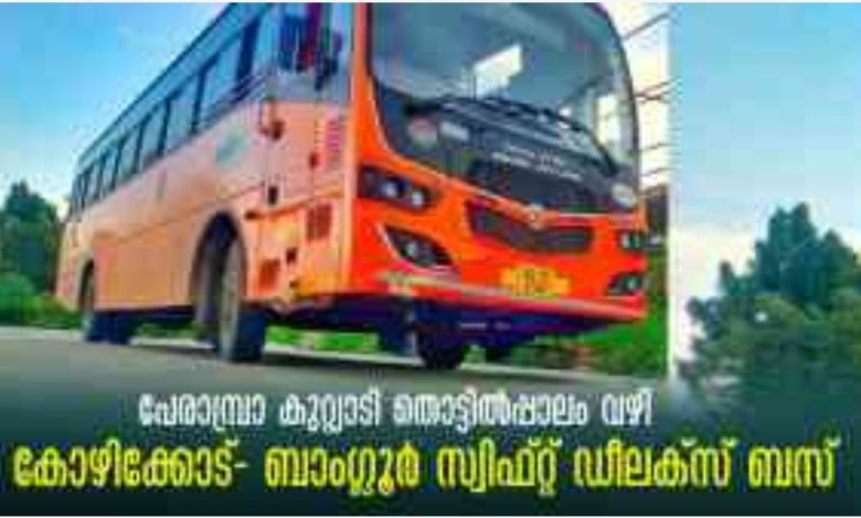 കോഴിക്കോട് കെഎസ്ആർടിസി ഡിപ്പോയിൽ നിന്നും ബംഗളൂരിലേക്ക് കെഎസ്ആർടിസിയുടെ സ്വിഫ്റ്റ് സർവീസ് ആരംഭിച്ചു.അത്തോളി- പേരാമ്പ്രാ- കുറ്റ്യാടി- തൊട്ടിൽപ്പാലം- മാനന്തവാടി വഴിയാണ് ബസ് ബംഗളൂരുവിൽ എത്തുക.