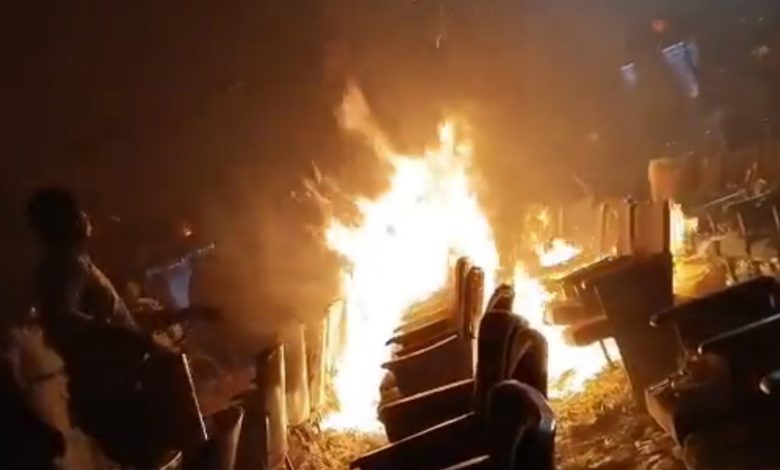 തീയേറ്റർ ഉടമകൾ തീ നിയന്ത്രണവിധേയമാക്കാൻ ശ്രമിക്കുന്നതും പോലീസിനെ സഹായത്തിനായി നിയോഗിച്ചതും വീഡിയോയിൽ ഉണ്ട്. സംഭവത്തിന് സോഷ്യൽ മീഡിയയിൽ രൂക്ഷമായ പ്രതികരണമാണ് ഉണ്ടാകുന്നത്. ഏത് താരത്തിൻറെ ആരാധകരാണെങ്കിലും ബോധം വേണമെന്നാണ് ചിലർ കമൻറ് ചെയ്യുന്നത്. തീക്കളിയാണ് ചില ഫാൻസ് നടത്തിയതെന്നാണ് ചിലർ ആരോപിക്കുന്നത്.