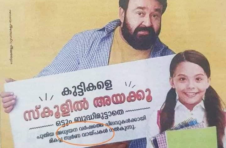 സ്വകാര്യ പണമിടപാട് സ്ഥാപനത്തിനായി നടൻ മോഹൻലാൽ ചെയ്ത പരസ്യത്തിനെതിരെ സോഷ്യൽ മീഡിയയിൽ തെറിയുടെ ട്രോൾ മഴ ! പുതിയ അധ്യയന വർഷത്തിൽ കുട്ടികളെ സ്കൂളിൽ വിടാൻ സ്വർണ്ണം പണയം വയ്ക്കൂ എന്ന ബോർഡുമായി മോഹൻലാൽ നിൽക്കുന്ന പരസ്യത്തിനെതിരെയാണ് സോഷ്യൽ മീഡിയ വാളെടുത്തിരിക്കുന്നത്.