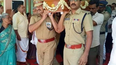 ഡ്യൂട്ടിക്കിടെ മരണപ്പെട്ട പോലീസ് ഉദ്യോഗസ്ഥൻ്റെ ശവമഞ്ചം തോളിലേറ്റി കോട്ടയം ജില്ലാ പോലീസ് മേധാവി കെ.കാർത്തിക്ക്