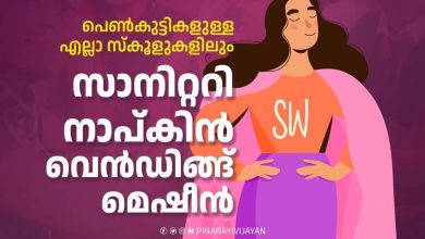 തിരുവനന്തപുരം:സംസ്ഥാനത്തെ പെൺകുട്ടികളുള്ള എല്ലാ സ്കൂളുകളിലും സാനിറ്ററി നാപ്കിൻ വെൻഡിങ്ങ് മെഷീൻ നിർബന്ധമാക്കി സർക്കാർ ഉത്തരവിറക്കി. നാപ്കിൻ സംസ്ക്കരിക്കാനുള്ള സംവിധാനവും സ്കൂളുകളിൽ ഉറപ്പുവരുത്തുന്നതായിരിക്കും. പൊതുവിദ്യാഭ്യാസ വകുപ്പ് തദ്ദേശ സ്വയംഭരണ സ്ഥാപനങ്ങളുമായി ചേർന്നാണ് സ്കൂളുകളിൽ ഈ സൗകര്യം ഒരുക്കുക.സ്കൂളുകളിൽ നാപ്കിൻ വെൻഡിങ്ങ് മെഷീൻ ഉറപ്പുവരുത്തുന്നത് ആർത്തവ ശുചിത്വം സ്ത്രീകളുടെ അവകാശമാണെന്ന ഉറച്ച പ്രഖ്യാപനം കൂടിയാണ്. ആർത്തവം പാപമാണെന്ന നിർമ്മിത പൊതുബോധത്തെ മറികടന്ന് കൂടുതൽ ആത്മവിശ്വാസത്തോടെ നമ്മുടെ പെൺകുഞ്ഞുങ്ങൾ വളരട്ടെ…