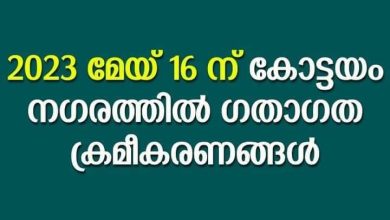 2023 മേയ് 16 ന് കോട്ടയം നഗരത്തിൽ ഗതാഗത ക്രമീകരണങ്ങൾ കോട്ടയം:സംസ്ഥാന സർക്കാരിന്റെ രണ്ടാം വാർഷികത്തിന്റെ കോട്ടയം ജില്ലാതല പരിപാടിയുടെ ഉദ്ഘാടനത്തോടനുബന്ധിച്ചു നടക്കുന്ന ഘോഷയാത്രയുടെ ഭാഗമായി പൊതുജനങ്ങളുടെ സൗകര്യാർഥം ഇന്ന്(മേയ് 16 ചൊവ) രാവിലെ 9.00 മുതൽ കോട്ടയം നഗരത്തിൽ ഗതാഗത ക്രമീകരണങ്ങൾ ഏർപ്പെടുത്തിയതായി ജില്ലാ പോലീസ് മേധാവി അറിയിച്ചു. ചിങ്ങവനം ഭാഗത്തുനിന്ന് എം.സി. റോഡിലൂടെ വരുന്ന വലിയ വാഹനങ്ങൾ സിമെന്റ് കവല ജംഗ്ഷനിൽനിന്ന് ഇടതു തിരിഞ്ഞ് പാറേച്ചാൽ റോഡുവഴി തിരുവാതുക്കൽ-കുരിശുപള്ളി- അറുത്തൂട്ടി ജംഗ്ഷനിൽ എത്തണം. കുമരകം ഭാഗത്തേക്കുപോകേണ്ട വാഹനങ്ങൾ അവിടെനിന്ന്് ഇടത്തോട്ട് തിരിഞ്ഞു പോകേണ്ടതും ടൗണിലേക്കും മെഡിക്കൽ കോളജ് ഭാഗത്തേക്കും പോകണ്ട വാഹനങ്ങൾ വലത്തോട്ട് തിരിഞ്ഞ് ചാലുകുന്ന് ജംഗ്ഷനിലെത്തി ഇടത്തോട്ടുതിരിഞ്ഞും പോകേണ്ടതാണ്. ടൗണിലേക്ക് പോകേണ്ട പ്രൈവറ്റ് ബസുകൾ മാത്രം ചാലുകുന്ന് ജംഗ്ഷനിൽനിന്നും ബേക്കർ ജംഗ്ഷൻ വഴി നാഗമ്പടത്തേക്ക് പോകേണ്ടതാണ് ചിങ്ങവനം ഭാഗത്തുനിന്ന് എം.സി. റോഡിലൂടെ കിഴക്കോട്ടുപോകേണ്ട ചെറുവാഹനങ്ങൾ മണിപ്പുഴ ജംഗ്ഷനിൽ നിന്നും വലത്തോട്ടു തിരിഞ്ഞ് ബൈപാസ് റോഡു വഴി…