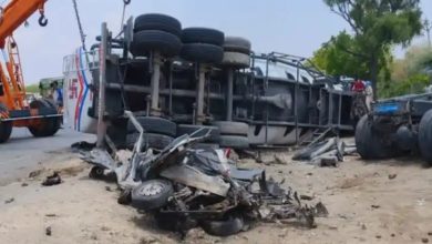 കാറിന് മുകളില് ടാങ്കര് മറിഞ്ഞ് മൂന്ന് കുട്ടികള് ഉള്പ്പെടെ എട്ട് പേര് മരിച്ചു