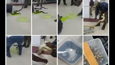 വിമാനത്താവളത്തില് യാത്രക്കാരിയുടെ ലഗേജില് പാമ്പിന്കൂട്ടം