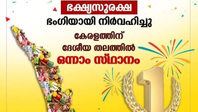 ഭക്ഷ്യ സുരക്ഷയിൽ ചരിത്ര നേട്ടം കൈവരിച്ച് കേരളം; ഇന്ത്യയിൽ ഒന്നാമത്