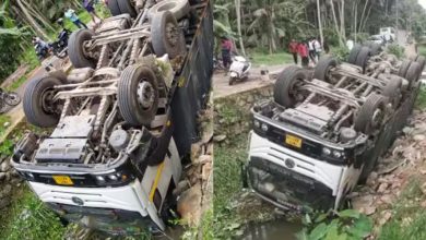 റോഡിന്റെ നിർമാണത്തിലെ അപാകത ജനപ്രതിനിധികളും നാട്ടുകാരും ചൂണ്ടി കാണിച്ചിട്ടും അധികൃതർ അവഗണിച്ചു; ഒടുവിൽ ലോഡുമായി വന്ന ടിപ്പർ ലോറി റോഡ് ഇടിഞ്ഞ് തോട്ടിലേക്ക് തല കീഴായി മറിഞ്ഞു!