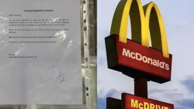 ഒരറിയപ്പുണ്ടാകുന്നത് വരെ തക്കാളിയില്ലാത്ത വിഭവങ്ങളാകും ലഭിക്കുക:മക് ഡൊണാള്ഡ്സിന്റെ ഔട്ട്ലെറ്റിന് മുന്നിൽ ബോർഡ്