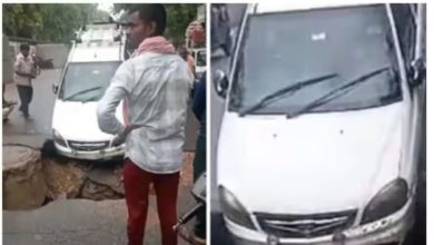 ഓടിക്കൊണ്ടിരുന്ന കാര് റോഡ് പിളര്ന്നു താഴ്ന്നു; ഡ്രൈവര് അത്ഭുതകരമായി രക്ഷപ്പെട്ടു