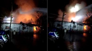 തൃശൂര് പെരിഞ്ഞനത്ത് വീട് കത്തിനശിച്ചു
