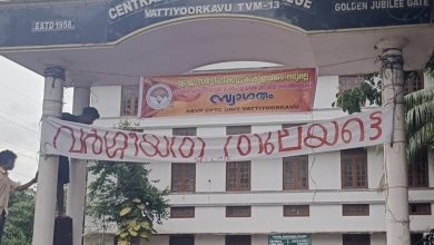 തിരുവനന്തപുരം: സംസ്ഥാനത്ത് വ്യാജ ബിരുദ സര്ട്ടിഫിക്കേറ്റ് വിവാദങ്ങള് പൊന്തിവരുന്നതിനിടെ വട്ടിയൂര്ക്കാവില് രസകരമായ ബാനറുമായി എബിവിപി. വ്യാജ സര്ട്ടിഫിക്കേറ്റുകള് ഇവിടെ ലഭ്യമല്ല” എന്നെഴുതിയ ബാനറാണ് വട്ടിയൂര്ക്കാവ് സെന്ട്രല് പോളിടെക്നിക് കോളജിന്റെ പ്രവേശന കവാടത്തില് കെട്ടിയത്. ”വ്യാജ സര്ട്ടിഫിക്കേറ്റുകള് ഇവിടെ ലഭ്യമല്ല. പരീക്ഷ എഴുതിയാല് മാത്രം ജയിക്കുന്ന കലാലയത്തിലേക്ക് സ്വാഗതം” എന്നാണ് ബാനറിലുള്ളത്. എസ്എഫ്ഐയുടെ ”വര്ഗീയത തുലയട്ടെ” എന്നെഴുതിയ ബാനറിന് തൊട്ട് മുകളിലാണ് ഇത് സ്ഥാപിച്ചിരിക്കുന്നത്. എസ്എഫ്ഐ മുന് നേതാവ് നിഖില് തോമസിന്റെ വ്യാജ ബിരുദ സര്ട്ടിഫിക്കേറ്റുമായി ബന്ധപ്പെട്ട വിവാദം പൊങ്ങിവന്നതിന് പിന്നാലെ ഇതുമായി ബന്ധപ്പെട്ട നിരവധി ആരോപണങ്ങള് ഉയരുന്നുണ്ട്. കലിംഗ സര്വകലാശാലയില് നിന്നുള്ള വ്യാജ ബിരുദ സര്ട്ടിഫിക്കേറ്റാണ് നിഖില് നേടിയെടുത്തത്. തുടര്ന്ന് നടത്തിയ പരിശോധനയില് നിരവധി പേര് ഇത്തരത്തില് വ്യാജ സര്ട്ടിഫിക്കേറ്റ് നേടിയതായും കണ്ടെത്തി. വ്യാജ എക്സ്പീരിയന് സര്ട്ടിഫിക്കേറ്റ് ഹാജരാക്കിക്കൊണ്ട് ഗവ.കോളജില് ജോലി നേടിയ എസ്എഫ്ഐ മുന് നേതാവ് കെ വിദ്യയും അറസ്റ്റിലായതും വിവാദങ്ങള്ക്ക് വഴിവെച്ചു. മുഖ്യമന്ത്രിയുടെ അക്കാദമിക് ഉപദേശക സ്ഥാനം വഹിക്കുന്ന…