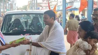 ഗുരുവായൂര്: ഗുരുവായൂരപ്പന് വഴിപാടായി മാരുതിയുടെ പുതിയ മോഡല് ഈക്കോ സെവൻ സീറ്റര് വാഹനം. ബംഗളൂരുവില് ഐ.ടി സ്ഥാപനം നടത്തുന്ന കോഴിക്കോട് സ്വദേശി അഭിലാഷാണ് വാഹനം സമര്പ്പിച്ചത്. ഇന്നലെ രാവിലെ ഗുരുവായൂര് ക്ഷേത്രം കിഴക്കേനട സത്രം ഗേറ്റിന് സമീപം നടന്ന ചടങ്ങില് അഭിലാഷില് നിന്നും ക്ഷേത്രം ഊരാളനും ദേവസ്വം ഭരണസമിതി അംഗവുമായ മല്ലിശ്ശേരി പരമേശ്വരൻ നമ്ബൂതിരിപ്പാട് വാഹനം എറ്റുവാങ്ങി. ദേവസ്വം ഭരണസമിതി അംഗം സി.മനോജ്, ദേവസ്വം ഡെപ്യൂട്ടി അഡ്മിനിസ്ട്രേറ്റര് ടി.രാധിക, ദേവസ്വം ഡെപ്യൂട്ടി അഡ്മിനിസ്ട്രേറ്റര് ഇൻ ചാര്ജ് എം.രാധ, അസി.മാനേജര്മാരായ എ.വി. പ്രശാന്ത്, പി.വി. സത്യൻ എന്നിവര് സന്നിഹിതരായി.
