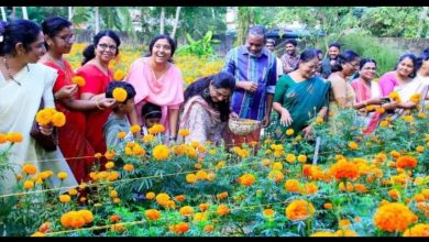 പൂക്കൃഷിയില് നൂറുമേനി വിളവെടുത്ത് മന്ത്രി പി പ്രസാദ്
