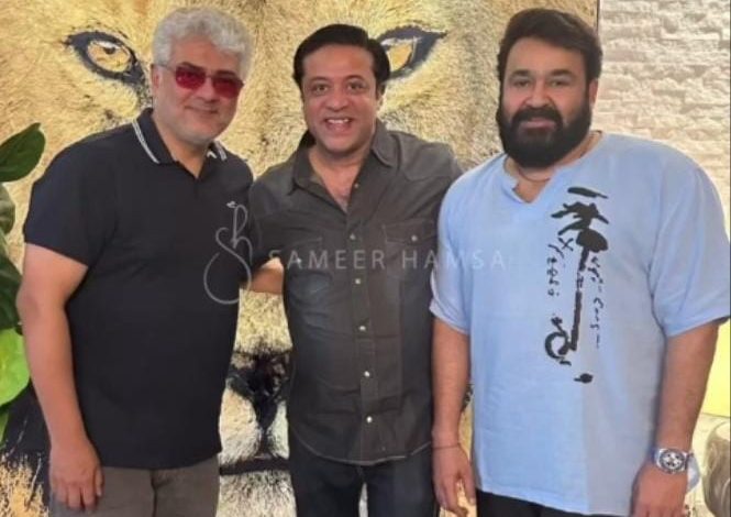 മോഹൻലാലിന്റെ സുഹൃത്തും വ്യവസായിയുമായ സമീർ ഹംസയാണ് സൂപ്പർതാരങ്ങൾ ഒന്നിച്ചുള്ള ചിത്രങ്ങൾ പങ്കുവച്ചത്. മോഹൻലാലിന്റെ വീട്ടിലെത്തിയ അജിത്ത് ഏറെ നേരം ഒന്നിച്ച് ചെലവഴിച്ചു. സിനിമയേക്കുറിച്ചും കുടുംബത്തേക്കുറിച്ചുമുള്ള വിശേഷങ്ങൾ ഇരുവരും പങ്കുവച്ചു. സോഷ്യൽ മീഡിയയിൽ വൈറലാവുകയാണ് സൂപ്പർതാരങ്ങൾ ഒന്നിച്ചുള്ള ചിത്രങ്ങൾ. ഇരുവരും ഒന്നിച്ചുള്ള സിനിമ വരണമെന്നാണ് ആരാധകർ കുറിക്കുന്നത്.