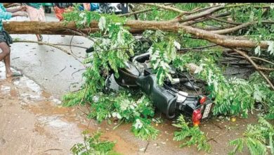 ബൈക്കില് മരംവീണ് അധ്യാപകന് പരിക്ക്