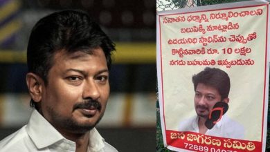 ഉദയനിധിയെ തല്ലിയാല് പത്തുലക്ഷം സമ്മാനം; നാടാകെ പോസ്റ്ററുകള്