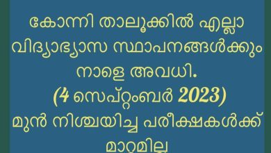 മണ്ണിടിച്ചിൽ സാധ്യതാമേഖല; കോന്നി താലൂക്കിൽ എല്ലാ വിദ്യാഭ്യാസ സ്ഥാപനങ്ങൾക്കും നാളെ അവധി