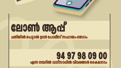അംഗീകൃതമല്ലാത്ത ലോൺ ആപ്പുകൾ ഉപയോഗിച്ച് വായ്പ എടുത്തതിലൂടെ തട്ടിപ്പിന് ഇരയായവർക്ക് പരാതി നൽകാൻ പ്രത്യേക വാട്സാപ്പ് നമ്പർ സംവിധാനം നിലവിൽ വന്നു. 94 97 98 09 00 എന്ന നമ്പറിൽ 24 മണിക്കൂറും പോലീസിനെ വാട്സാപ്പിൽ ബന്ധപ്പെട്ട് വിവരങ്ങൾ കൈമാറാം. ടെക്സ്റ്റ്, ഫോട്ടോ, വീഡിയോ, വോയിസ് എന്നിവയായി മാത്രമാണ് പരാതി നൽകാൻ കഴിയുക. നേരിട്ടുവിളിച്ച് സംസാരിക്കാനാവില്ല. തിരുവനന്തപുരത്ത് പോലീസ് ആസ്ഥാനത്താണ് ഈ സംവിധാനം പ്രവർത്തിക്കുന്നത്. സാമ്പത്തികകുറ്റകൃത്യങ്ങൾ റിപ്പോർട്ട് ചെയ്യുന്നതിനുള്ള സൈബർ പോലീസിന്റെ ഹെൽപ് ലൈൻ ആയ 1930 ലും ഏതു സമയത്തും വിളിച്ച് പരാതി നൽകാവുന്നതാണ്. #KeralaPolice