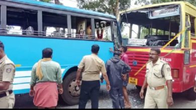 കോട്ടയം: കെ കെ റോഡിൽ പതിനേഴാം മൈലിനു സമീപം ഇളംപള്ളി കവലയില് കെഎസ്ആര്ടിസി ബസും സ്വകാര്യ ബസും കൂട്ടിയിടിച്ച് നിരവധി പേർക്ക് പരിക്ക്. ഇവരെ കാഞ്ഞിരപ്പള്ളി ജനറല് ആശുപത്രിയിലും കൊടുങ്ങൂര് ടിഎംഎം ആശുപത്രിയിലുമായി പ്രവേശിപ്പിച്ചു. പൊൻകുന്നത്തുനിന്നു ചങ്ങനാശേരിയിലേക്ക് പോകുകയായിരുന്ന കെഎസ്ആര്ടിസി ബസ് ബൈക്കിനെ മറികടക്കുമ്ബോള് എതിര്ദിശയില് പൊൻകുന്നത്തേക്ക് വന്ന സ്വപ്നബസില് ഇടിക്കുകയായിരുന്നു. ഇടിയുടെ ആഘാതത്തില് ഇരു ബസുകളുടെയും മുൻവശം തകര്ന്നു. യാത്രക്കാര്ക്ക് മുഖം കമ്ബിയിലിടിച്ചും നിലത്തു വീണുമാണ് പരിക്ക്. ആരുടെയും പരിക്ക് സാരമുള്ളതല്ല.അപകടത്തെത്തുടര്ന്ന് ദേശീയപാതയില് ഒരു മണിക്കൂറോളം ഗതാഗതം സ്തംഭിച്ചു. പള്ളിക്കത്തോട് പോലീസ് മേല്നടപടി സ്വീകരിച്ചു.