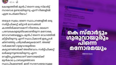 കേരളത്തിൽ മുൻപ് തന്നെ ഒരു സ്മാർട്ട് നഗരസഭ ഉണ്ടായിരുന്നു എന്ന് നിങ്ങളിൽ എത്ര പേർക്കറിയാം? തദ്ദേശ സ്വയം ഭരണ സ്ഥാപനങ്ങളിൽ ഒരു സർട്ടിഫിക്കറ്റ് കിട്ടാൻ മാസങ്ങൾ കാത്തിരിക്കണമെന്ന് നിരന്തരം ലേഖന പരമ്പരകളെഴുതിക്കൊണ്ടിരുന്ന മനോരമ, സേവനങ്ങളെല്ലാം മുൻപ് തന്നെ വേഗത്തിൽ കിട്ടിയിരുന്നു എന്ന് സ്ഥാപിക്കാൻ ഇപ്പോൾ കിണഞ്ഞു പരിശ്രമിക്കുകയാണ്. അഞ്ച് വർഷമായി ഗുരുവായൂരിലെ കല്യാണങ്ങൾക്ക് അതിവേഗം സർട്ടിഫിക്കറ്റ് ലഭിക്കുന്നുണ്ടായിരുന്നു എന്ന വെളിപ്പെടുത്തലാണ് മനോരമയ്ക്ക് മുൻകാല പ്രാബല്യത്തോടെ സ്ഥാപിക്കേണ്ടത്. ഇത് നഗരസഭയോടുള്ള എന്തെങ്കിലും സ്നേഹം കൊണ്ടല്ല, കെ സ്മാർട്ടിനെ എങ്ങനെയും എതിർക്കുക എന്ന ലക്ഷ്യം മുൻനിർത്തി മാത്രമാണ്. അല്ലെങ്കിൽ ഗുരുവായൂരിലെ ഈ സ്മാർട്ട് നഗരസഭയെക്കുറിച്ച് ഈ അഞ്ച് കൊല്ലവും മനോരമ പറഞ്ഞ് നിങ്ങളാരെങ്കിലും അറിഞ്ഞിട്ടുണ്ടോ? നമുക്ക് വസ്തുതകളിലേക്ക് വരാം എന്തായിരുന്നു ഗുരുവായൂരിൽ മുൻപ് ഉണ്ടായിരുന്ന സംവിധാനം? ഗുരുവായൂരിൽ വിവാഹ രജിസ്ട്രേഷന് ഉണ്ടായിരുന്ന ആ ‘സ്പെഷ്യൽ’ സോഫ്റ്റ് വെയറിന്റെ പേര് സേവന എന്നാണ്. ഇനി ഈ ഈ സ്പെഷ്യൽ സോഫ്റ്റ്വെയർ മനോരമ പറയും പോലെ ഗുരുവായൂരിൽ…