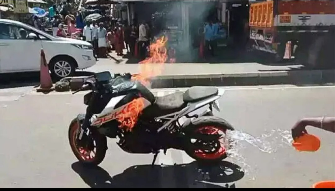 ബൈക്കിന് മുന്നില്‍ തീ പടരുന്നത് കണ്ട വഴിയോരക്കച്ചവടക്കാരൻ ബഹളം വച്ച്‌ ബൈക്ക് നിറുത്തുകയായിരുന്നു.പിന്നാലെ ബൈക്കിൽ തീ ആളിപ്പടരുകയും ചെയ്തു.