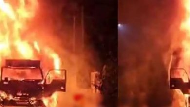 കുഴല്കിണര് കുഴിക്കുന്നതിനിടെ ലോറി കത്തിനശിച്ചു; ഡ്രൈവറും സഹായിയും ഓടിരക്ഷപ്പെട്ടു