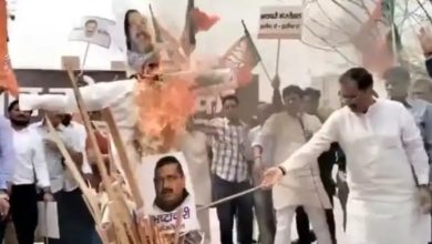 ബിജെപിയുടെ നേതൃത്വത്തിൽ ഡൽഹിയിൽ കെജ്രിവാളിന്റെ കോലം കത്തിച്ച് പ്രതിഷേധം