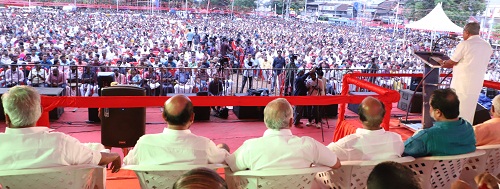 2106 എല്.ഡി.എഫ് അധികാരത്തില് വന്നതു കൊണ്ട് മാത്രമാണ് ആരോഗ്യ രംഗത്തും വിദ്യഭ്യാസ രംഗത്തും സമഗ്രമാറ്റം കൊണ്ടു വരാനായത്. കേരളത്തില് ദേശീയ പാത വികസനവും ഗ്യാസ് പൈപ്പിടലും വൈദ്യുത ഗ്രിഡും തുടങ്ങി ഒന്നും നടക്കില്ലെന്ന് പറഞ്ഞ് കമ്പനികള് പിന്മാറിയതാണ്. ഇവയെയെല്ലാം തിരികെ കൊണ്ട് വന്ന് രാജ്യത്തിന് തന്നെ മാതൃകയാകുന്ന തരത്തില് ദേശീയപാത വികസനം നടപ്പിലാക്കിയത് എല്ഡിഎഫ് സര്ക്കാരാണെന്നും മുഖ്യമന്ത്രി പറഞ്ഞു. സിപിഐ തൃശൂര് ജില്ല സെക്രട്ടറി കെ.കെ. വത്സരാജ്, സിപിഎം ജില്ല സെക്രട്ടറി കെ.വി. അബ്ദുള്ഖാദര്, റവന്യൂ മന്ത്രി കെ.രാജന് എന്നിവര് പ്രസംഗിച്ചു.