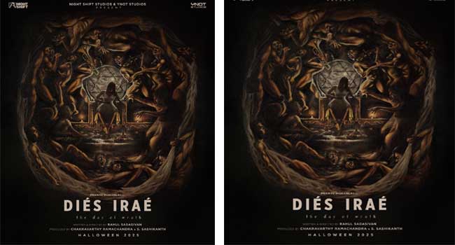 പ്രണവ് മോഹൻലാലിനെ നായകനാക്കി രാഹുൽ സദാശിവൻ രചിച്ചു സംവിധാനം ചെയ്ത ‘ഡീയസ് ഈറേ’ എന്ന ഹൊറർ ത്രില്ലർ ചിത്രത്തിന്റെ ഫസ്റ്റ് ലുക്ക് പോസ്റ്റർ പുറത്ത്. ചക്രവർത്തി രാമചന്ദ്ര, എസ്. ശശികാന്ത് എന്നിവർ ചേർന്ന് നൈറ്റ് ഷിഫ്റ്റ് സ്റ്റുഡിയോസ്, വൈ നോട്ട് സ്റ്റുഡിയോസ് എന്നീ ബാനറുകളിലാണ് ചിത്രം നിർമ്മിച്ചിരിക്കുന്നത്. വമ്പൻ പ്രേക്ഷക- നിരൂപക പ്രശംസ നേടിയ ‘ഭ്രമയുഗം’ എന്ന മമ്മൂട്ടി ചിത്രത്തിന്റെ വിജയത്തിന് ശേഷം, രാഹുൽ സദാശിവൻ- നൈറ്റ് ഷിഫ്റ്റ് സ്റ്റുഡിയോസ് ടീം ഒന്നിക്കുന്ന ചിത്രം കൂടിയാണ് ‘ഡീയസ് ഈറേ’. ബ്ലാക്ക് ആൻഡ് വൈറ്റ് ഫോർമാറ്റിൽ ഒരുക്കിയ ഹൊറർ ത്രില്ലർ ഭ്രമയുഗത്തിന് ശേഷം, ഹൊറർ ത്രില്ലർ എന്ന സിനിമാ വിഭാഗത്തിന്റെ സാദ്ധ്യതകൾ ഇനിയും കൂടുതലായി ഉപയോഗിക്കുന്ന ചിത്രമായാണ് ‘ഡീയസ് ഈറേ’ ഒരുക്കുന്നത്. ‘ഡീയസ് ഈറേ ’യുടെ കഥാപശ്ചാത്തലം സംബന്ധിച്ച വിവരങ്ങൾ ഒന്നും തന്നെ ഇതുവരെ പുറത്തുവിട്ടിട്ടില്ല. ക്രോധത്തിൻ്റെ ദിനം എന്ന അർത്ഥം വരുന്ന ‘ദി ഡേ ഓഫ് റാത്ത്’ എന്നതാണ് ചിത്രത്തിൻ്റെ ടൈറ്റിൽ ടാഗ് ലൈൻ.