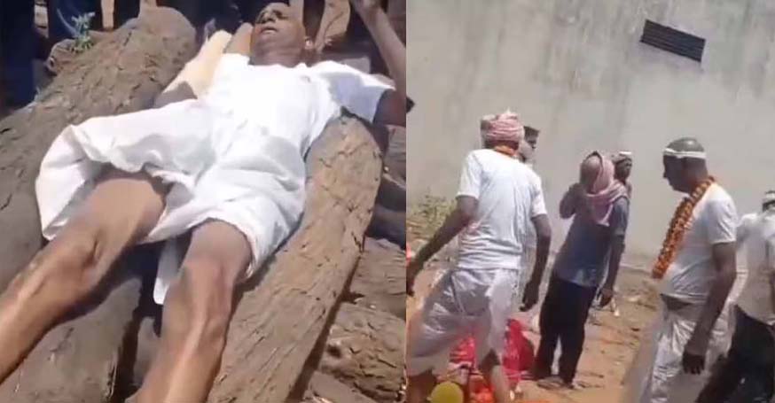 ആഭരണങ്ങള് നല്കണമെന്നാവശ്യപ്പെട്ട് അമ്മയ്ക്കൊരുക്കിയ ചിതയില് മകന് കിടക്കുന്നത് വീഡിയോയില് കാണാം. അമ്മയുടെ മൃതദേഹം ചിതയിലേക്ക് എടുത്തപ്പോഴായിരുന്നു സംഭവം. മരിച്ച ഭൂരിദേവിയുടെ ഏഴ് ആണ്മക്കളില് ആറ് പേര് ഗ്രാമത്തില് ഒരുമിച്ചാണ് താമസിക്കുന്നത്. അഞ്ചാമത്തെ മകന് ഓംപ്രകാശ് സ്വത്ത് തര്ക്കത്തെ തുടര്ന്ന് ഒറ്റയ്ക്കാണ് താമസിക്കുന്നത്. ഗ്രാമത്തിലെ ആചാരം അനുസരിച്ച് മരണാനന്തര ചടങ്ങുകള്ക്കു ശേഷമാണ് മരിച്ചയാളുടെ ശരീരത്തില് നിന്ന് ആഭരണങ്ങള് ഊരിയെടുക്കുന്നത്. അത്തരത്തില് ഭൂരിദേവിയുടെ ആഭരണങ്ങള് മൂത്തമകനു കൈമാറിയതോടെയായിരുന്നു പ്രശ്നങ്ങളുടെ തുടക്കം.