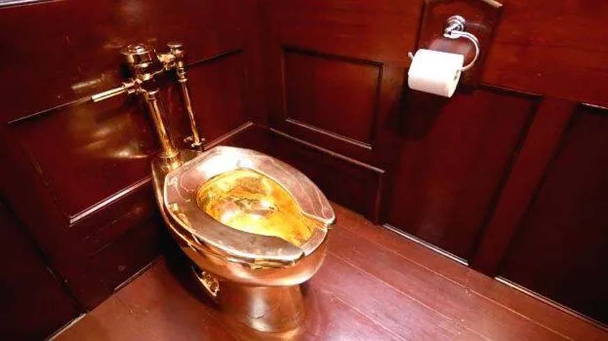 ഇറ്റാലിയന് ആര്ട്ടിസ്റ്റായ മൗറിസിയോ കറ്റേലന് ആണ് ‘അമേരിക്ക’ എന്ന് പേരുള്ള 18-കാരറ്റ് സ്വര്ണ ടോയ്ലെറ്റിന്റെ സ്രഷ്ടാവ്. പ്രദര്ശനത്തിന്റെ ഭാഗമായാണ് സ്വര്ണ ടോയ്ലെറ്റ് ഒക്സ്ഫോര്ഡ്ഷെയറിലെ ബ്ലെന്ഹെയിം കൊട്ടാരത്തില് സ്ഥാപിച്ചത്. ന്യൂയോര്ക്ക് സിറ്റിയിലെ സോളമന് ആര്. ഗഗ്ഗന്ഹെയിം മ്യൂസിയത്തിനായി 2016-ലാണ് ഈ സ്വര്ണ ടോയ്ലെറ്റ് നിര്മിക്കപ്പെട്ടത്. 2019 സെപ്റ്റംബറിലാണ് അഞ്ചുപേര് ഇംഗ്ലണ്ടിലെ ബ്ലെന്ഹെയിം കൊട്ടാരത്തില് അതിക്രമിച്ചുകയറി സ്വര്ണ ടോയ്ലെറ്റ് മോഷ്ടിച്ച് കടന്നുകളയുകയായിരുന്നു. മോഷ്ടാക്കള് വൈകാതെ പോലീസ് പിടിയിലായി. ഇവര്ക്കൊപ്പമാണ് ഫ്രെഡ് ഡോയെയും പോലീസ് കോടതിയില് ഹാജരാക്കിയത്.