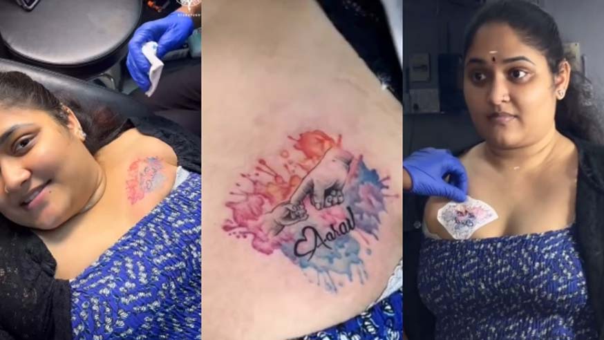 മാത്രമല്ല അനുശ്രീയുടെ യുട്യൂബ് ചാനലും അപ്രത്യക്ഷമായി. അമ്പതിനായിരത്തിന് മുകളില് സബ്സ്ക്രൈബേഴ്സുള്ള യുട്യൂബ് ചാനലായിരുന്നു നടിയുടേത്. ഇപ്പോഴിതാ അനുശ്രീയുടെ പുതിയൊരു വീഡിയോ സോഷ്യല്മീഡിയയില് വൈറലാവുകയാണ്. മകന്റെ പേര് നെഞ്ചില് പച്ചകുത്തിയ അനുശ്രീയാണ് വീഡിയോയിലുള്ളത്. അമ്മയുടേയും മകന്റേയും കൈകളും പേരിനൊപ്പം അനുശ്രീ ശരീരത്തില് ടാറ്റു ചെയ്തു. ഇനിയങ്ങോട്ട് മകന് മാത്രമാണ് തനിക്കെല്ലാമെന്ന് പറയാതെ പറയുന്നത് പോലെയായിരുന്നു പുതിയ ടാറ്റു.
