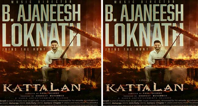 ബ്രഹ്മാണ്ഡ ചിത്രം ‘കെജിഎഫി’ൻറെ സംഗീത സംവിധായകൻ രവി ബസ്രൂറിനെ ‘മാർക്കോ’യിലൂടെ മലയാളത്തിൽ അവതരിപ്പിച്ച ക്യൂബ്സ് എൻറർടെയ്ൻമെൻറ്സും ഷെരീഫ് മുഹമ്മദും വീണ്ടും ഞെട്ടിക്കാനൊരുങ്ങുന്നു. ‘കാന്താര’യുടെ സംഗീത സംവിധായകൻ ബി. അജനീഷ് ലോക്നാഥ്, ക്യൂബ്സ് എൻറർടെയ്ൻമെൻറ്സിൻറെ രണ്ടാമത്തെ സിനിമയായ ‘കാട്ടാളനി’ലൂടെ തൻറെ മലയാളത്തിലെ അരങ്ങേറ്റത്തിനൊരുങ്ങുകയാണ്. കാട്ടാളൻറെ വേട്ടയ്ക്കൊപ്പം അജനീഷ് ലോക്നാഥ് ഉണ്ടാകുമെന്ന് പോസ്റ്റർ പങ്കുവെച്ചുകൊണ്ട് അറിയിച്ചിരിക്കുകയാണ് സിനിമയുടെ അണിയറപ്രവർത്തകർ.