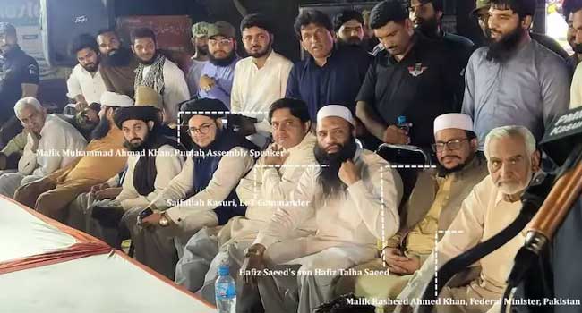 പാക്കിസ്ഥാൻ മർക്കസി മുസ്ലിം ലീഗ് (പിഎംഎംഎൽ) നടത്തിയ പരിപാടിയിൽ പാക് പ്രധാനമന്ത്രി ഷഹബാസ് ഷെരീഫിന്റെ അടുത്ത അനുയായികളും പാക്കിസ്ഥാൻ മുസ്ലിം ലീഗ് നവാസ് നേതാവ് മറിയം നവാസ്, പാക്ക് ഭക്ഷ്യ മന്ത്രി മാലിക് റഷീദ് അഹമ്മദ് ഖാൻ, പാക്ക് പഞ്ചാബ് നിയമസഭാ സ്പീക്കർ മാലിക് മുഹമ്മദ് അഹമ്മദ് ഖാൻ എന്നിവരും ലഷ്കറെ തയിബ നേതാക്കളായ സെയ്ഫുള്ള കസൂരി, തൽഹ സയീദ്, അമീർ ഹംസ എന്നിവരും ഒന്നിച്ചുള്ള ചിത്രമാണ് പുറത്തായത്. അതേസമയം കുപ്രസിദ്ധ ഭീകരൻ ഹാഫിസ് സയീദിന്റെ മകനാണ് തൽഹ സയീദ്. കൂടാതെ മന്ത്രിമാർ ഭീകരരെ വേദിയിലേക്ക് സ്വീകരിച്ച് ആശംസയറിയിക്കുന്നതിന്റെ വീഡിയോ ദൃശ്യങ്ങളും പുറത്തുവന്നിരുന്നു.