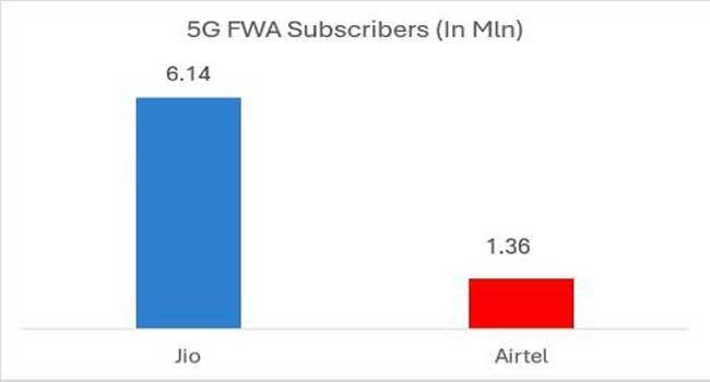 ദേശീയ തലത്തിൽ, 60.14 ലക്ഷത്തിലധികം വരിക്കാരുമായി 82% വിപണി വിഹിതത്തോടെ ഫിക്സഡ് വയർലെസ് ആക്സസ് വിപണിയിൽ ജിയോ ആധിപത്യം തുടരുന്നു. 2025 ഏപ്രിൽ, മൊത്തത്തിലുള്ള ഫിക്സഡ് ബ്രോഡ്ബാൻഡ് വളർച്ചയ്ക്ക് ഒരു റെക്കോർഡ് മാസമായിരുന്നു. ജിയോയുടെ വയർലൈൻ, ഫിക്സഡ് വയർലെസ് ആക്സസ് സേവനങ്ങൾ വഴി ഏകദേശം 9.10 ലക്ഷം പുതിയ ഉപയോക്താക്കളെയാണ് ചേർത്തത്.