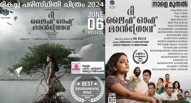 കണ്ടൽക്കാടുകളുടെ സംരക്ഷണവും കാൻസറിനെ പൊരുതി ജീവിക്കുന്ന കൊച്ചു പെൺകുട്ടിയുടെ അതിജീവനത്തിന്റെയും കഥപറയുന്ന ചിത്രം ലൈഫ് ഓഫ് മാൻഗ്രോവ് വെള്ളിയാഴ്ച തിയേറ്ററുകളിലേക്ക്. ലോക പരിസ്ഥിതി ദിനത്തോടനുബന്ധിച്ചാണ് ചിത്രം റിലീസ് ആകുന്നത്. കേരള ഫിലിം ക്രിട്ടിക്സ് അവാർഡിൽ മികച്ച പരിസ്ഥിതി ചിത്രമായി തിരഞ്ഞെടുക്കപ്പെട്ട ചിത്രമാണ് ലൈഫ് ഓഫ് മാൻഗ്രോവ്. അയ്ഷ്ബിൻ ആണ് ചിത്രത്തിൽ പ്രധാന കഥാപാത്രത്തെ അവതരിപ്പിച്ചിരിക്കുന്നത്.