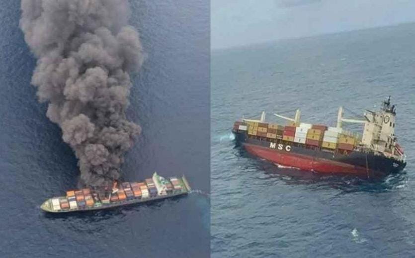 ഇതേസമയം, കോസ്റ്റ് ഗാർഡിന്റെ സാകേത്, സമുദ്ര പ്രഹരി എന്നീ രണ്ട് കപ്പലുകൾ സംഭവസ്ഥലത്തെത്തി, തീ അണയ്ക്കാനുള്ള ശ്രമങ്ങൾ തുടരുകയാണ്. .