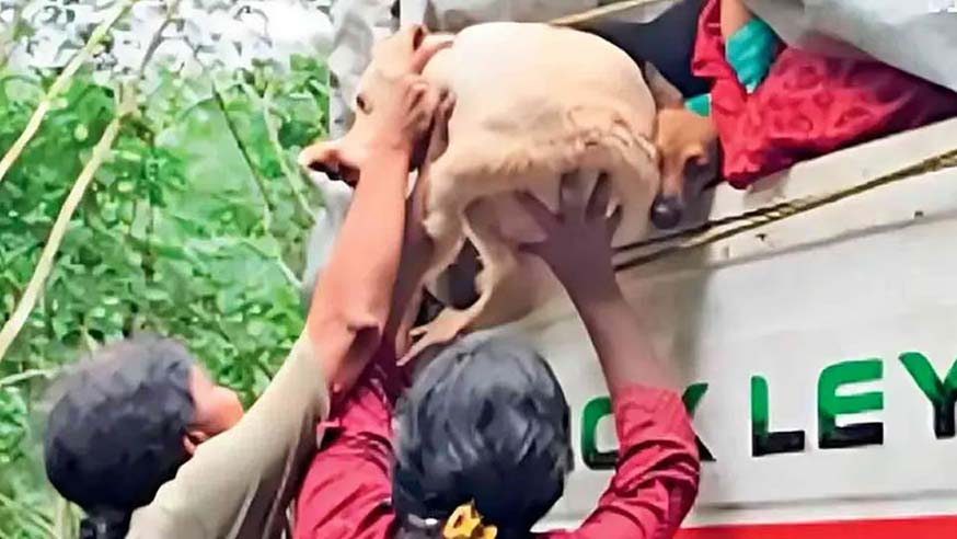 മൂടിക്കെട്ടിയ ലോറിയില് നിറയെ നായ്ക്കളുമായി അഞ്ചംഗസംഘം; തടഞ്ഞുവച്ച് നാട്ടുകാര്, പ്രതിഷേധം