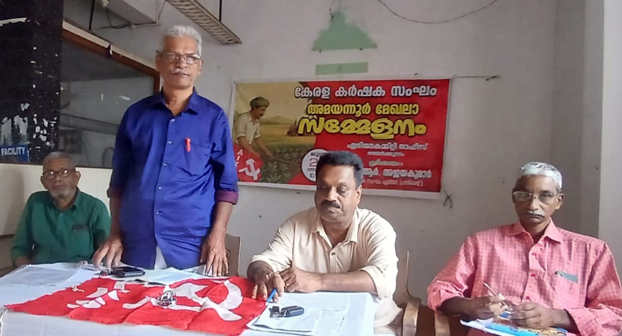 കോട്ടയം: കര്ഷകസംഘം അമയന്നൂര് മേഖലാ സമ്മേളനം അയര്ക്കുന്നം ഏരിയാ പ്രസിഡണ്ട് പി ആര് അജയകുമാര് ഉത്ഘാടനം ചെയ്തു. മേഖലാപ്രസിഡണ്ട് രാജ്മോഹന് അദ്ധ്യക്ഷതവഹിച്ചു. പി.കെ.ബാബു രക്തസാക്ഷി പ്രമേയവും ജയിംസ് വറുഗീസ് അനുശോചന പ്രമേയവും അവതരിപ്പിച്ചു. മേഖലാ സെക്രട്ടറി പി.ജെ.കുര്യന് റിപ്പോര്ട്ടും ട്രഷറര് കുരുവിള സി മാത്യു കണക്കും അവതരിപ്പിച്ചു. സിഐറ്റിയു ഏരിയാ ജോയിന്റ് സെക്രട്ടറി പി.പി പത്മനാഭന് അഭിവാദ്യം ചെയ്തു സംസാരിച്ചു. റ്റി.വി. മോഹന്കുമാര് സ്വാഗതവും കുരുവിള സി.മാത്യു നന്ദിയും പറഞ്ഞു. പുതിയ ഭാരവാഹികളായി പി.ജെ കുര്യന്(പ്രസിഡണ്ട്), കുരുവിള സി മാത്യു (സെക്രട്ടറി), രാജ്മോഹന്(ട്രഷറര്) എന്നിവരെ തെരഞ്ഞെടുത്തു.